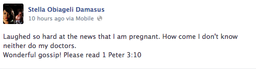Despite confirmation from close sources, alleged husband snatcher, Stella Damasus has denied her pregnancy.