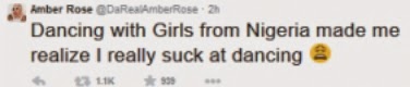 Days after she failed to pull Nigerian’s favourite dance step, Shoki, on stage, American model Amber Rose has admitted her weakness.