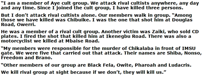 January 4, 2017 – Aye Cult Member Arrested For Killing IMSU Graduate In Imo State Confesses