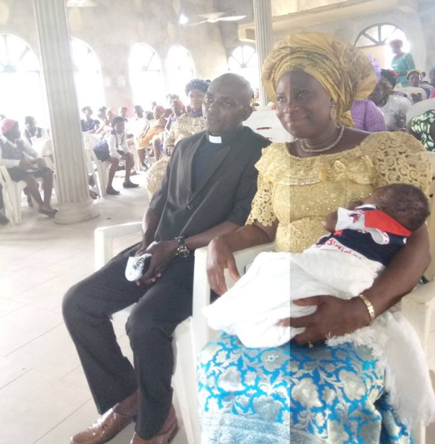 A woman who recently gave birth to a baby boy after 15 years of marriage today dedicated the child at a Pentecostal church in the capital city of Cross River state.
