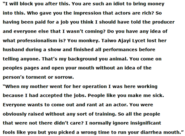 Guilt is indeed a silent killer. From Bimbo Akintola fiery response above, it’s very obvious she felt bad her fans told her the bitter truth.