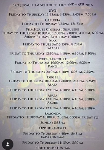 The movie titled Brother Jekwu started showing on Friday the 2nd of December.