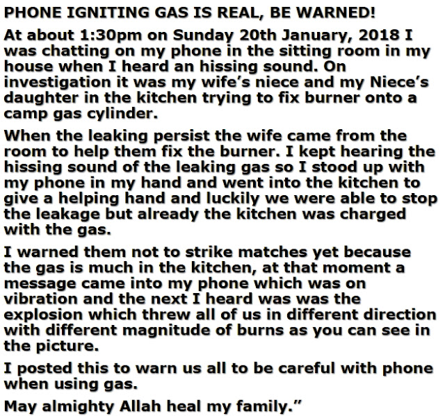 This warning is coming days after a gas cylinder exploded in her home in Lagos when she suddenly received a message on her phone as she was trying to fix a leaking burner.