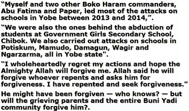 Feb 24, 2018 – Confession Of Boko Haram Terrorist Who Abducted Chibok Girls & Killed 58 School Boys In Buni Yadi,Yobe State