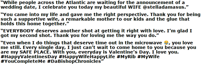The US-based filmmaker confirmed with his fans on Valentine’s day that he is now happily married to Stella whom he described as a supportive wife and a remarkable mother.