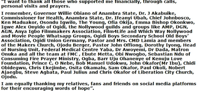 In a press statement released from his hospital bed, the actor thanked those who contributed to his treatment in one way or the other since last year.