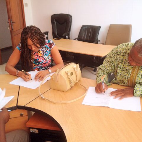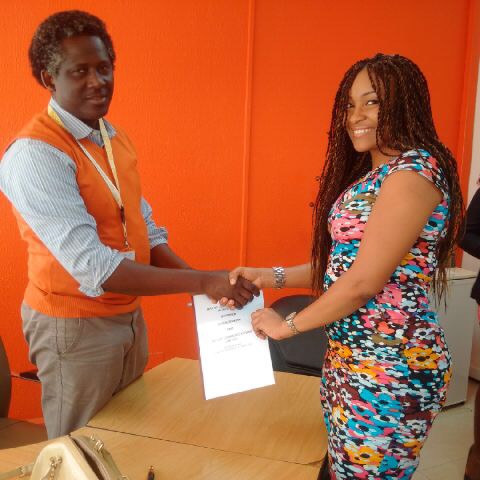 See Doris Simeon and her growing baby bump at GSK Nigeria office renewing her contract.