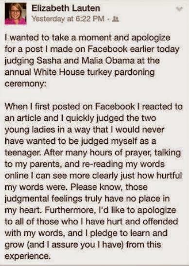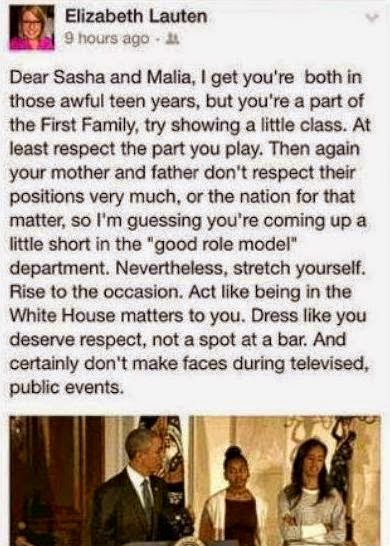 Nov 30, 2014 – Elizabeth Lauten Apologizes For Hate Comments On Obama’s Daughters, Malia & Sasha Photos