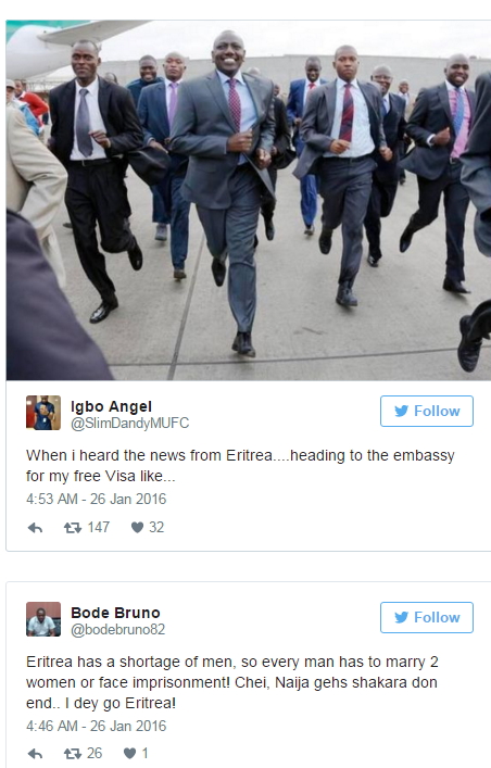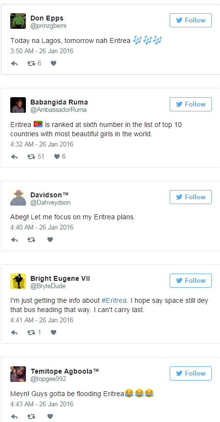 Many Nigerians on Twitter have started tracing their roots to Eritrea to make jest of the new government policy.