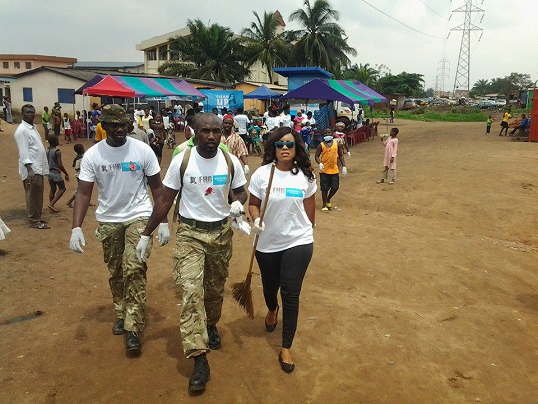 Curvy Ghanaian actress and talk show host, Joselyn Dumas joined other volunteers working with Forces Help Ghana, an organization set up to fight against Cholera by cleaning Ghana slums clean.