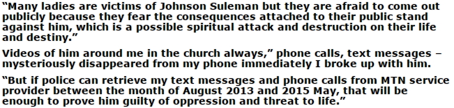 March 13, 2017 – Apostle Johnson Suleiman Used Me For Sacrifice After I Broke Up Sexual Affairs With Him – Another Sex Abuse Victim Speaks Up