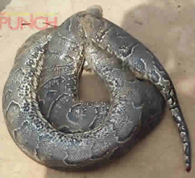 A python terrorizing residents of Ikola Ilumo area of Agbado Oke Odo LCDA of Lagos state has been caught and killed.
