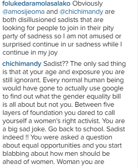 See the back and forth war of words between the two ladies and Foluke Daramola below