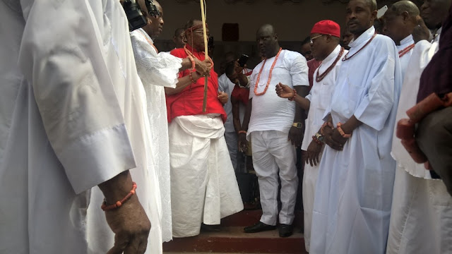 The breaking of native chalk ritual was carried out yesterday at the palace of the late monarch to officially announce his translation into the great beyond.
