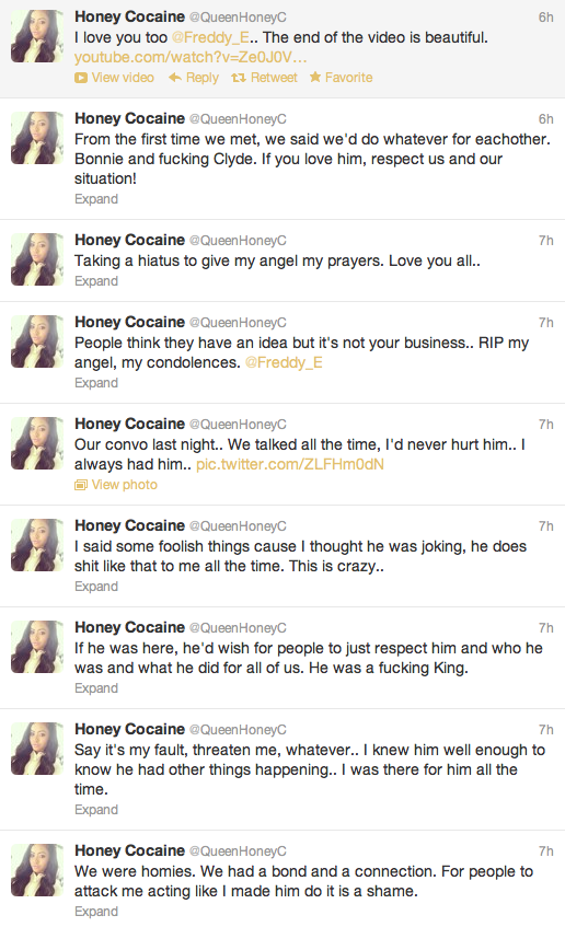 After Honey cocaine was blamed for the rapper’s death, she defended herself with the tweet below: