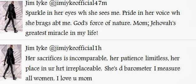 Sept 26, 2013 – Jim Iyke Writes Tribute To His Mother On Twitter “My Mum Is God’s Greatest Miracle In My Life”