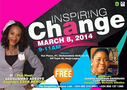 March 7, 2014 – Join Sunmbo Adeoye & Lady Mechanic, Sandra Agbuebor For International Women’s Day In Lagos