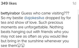 Betty told fans her friendship with Joke Silva dated back to the early 80s.