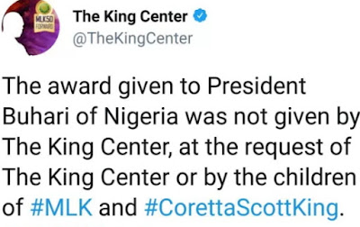 However, some Nigerians who believe Buhari does not deserve the award contacted The King Center (Martin Luther King Junior official foundation) to confirm the authenticity of the award and their response was not favourable.