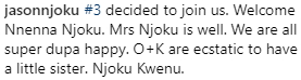 The co-owner of ROK Studio and wife of iRoko TV boss, Jason Njoku has put to bed.