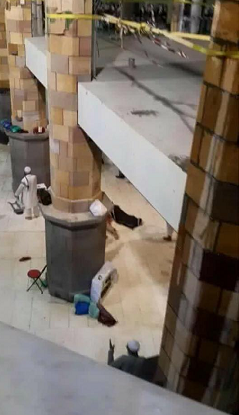 Very disturbing photos taken inside the Grand Mosque revealed dead bodies scattered on the floor with blood-soaked robes.