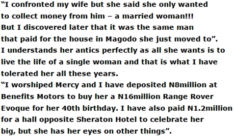 When asked why he had to injure his wife, Mr Gentry denied it, he said when Mercy Aigbe refused to come home, he went to her designer’s (Luminee) house where Mercy and others ganged up to attack him. He claimed that his wife also hit him with a stool.