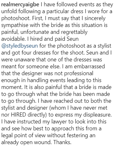 It was after Mercy Aigbe uploaded the photos that the bride raised an alarm before the story went viral.