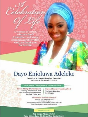 Dayo Adeleke, Newly Engaged Nigerian Lady Stabbed To Death By Cameroonian Domestic Servant At Parkview Estate In Ikoyi Lagos Buried As Court Remands Her Killer