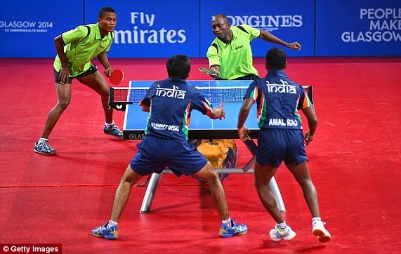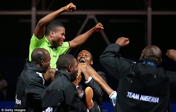 July 29, 2014 – 2014 Commonwealth Games: Nigerian Table Tennis Rep Ojo Onaolapo Strips To Celebrate Win