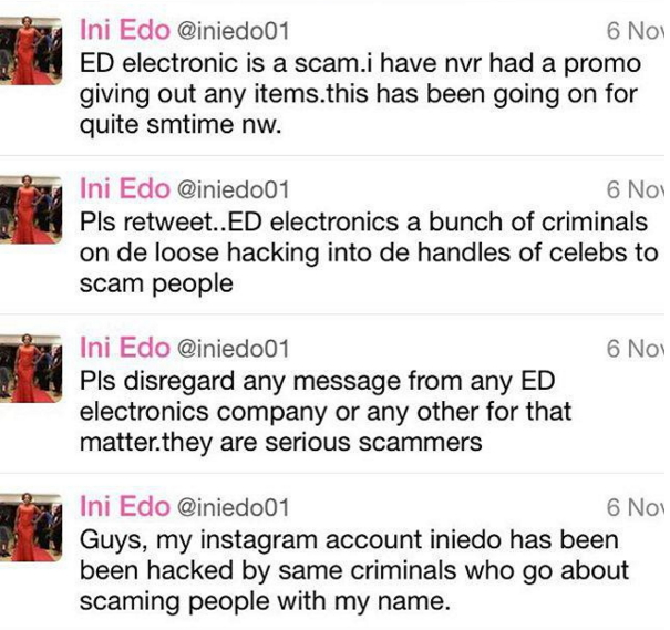 Before now, fraudsters have duped unsuspecting fans of Ini Edo of multi million naira in fake online promo.