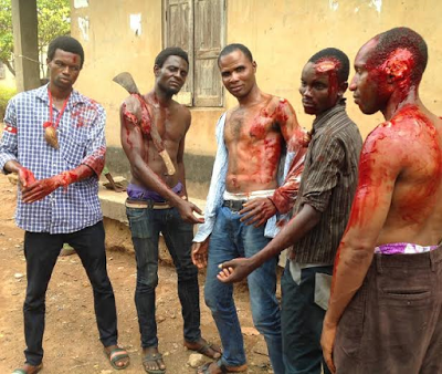The photos you are about to see will shock but don’t take it seriously, it is a make believe makeup from the set of an upcoming movie titled Igboho Osha.