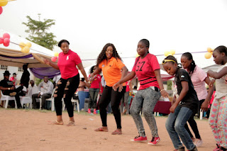 Several activities were held as the event lasted, some of which are kiddies games, beauty queens and celebrities football match, dance performances and comedy presentations in the open air field where the actress foundation provided a lot of food items, school materials and souvernirs for the kids.