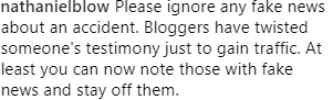 Earlier today, some Nigerian bloggers took to the social media with report that Olowogbogboro crooner, Nathaniel Bassey was involved in a fatal crash. They even shared photos to confirm the story.