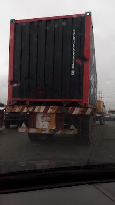 Earlier today, this container was spotted around Lekki, another unsecured container was spotted in Ajah on Sunday.