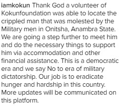 Photo: Crippled Man Attacked By Soldiers In Onitsha Located By Koko Foundation