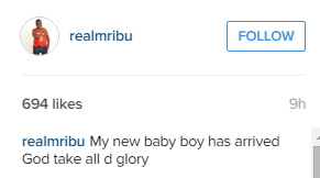 The proud dad shared this good news on his official Instagram page @realmribu last night.