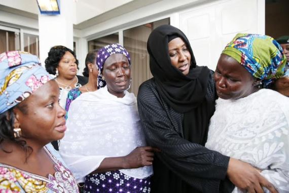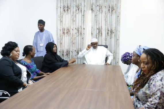 Shortly before he left Nigeria for South Africa yesterday, President Buhari and his wife Aisha and Dolapo Osinbajo met with some mothers of the school girls abducted by Boko Haram last year in Chibok, Borno state.