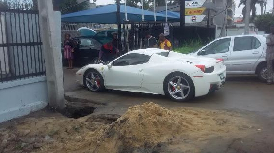 August 24, 2015 – Pictures: Drama As Ferrari Owner Shuts Down Victoria Island Lagos Nigeria