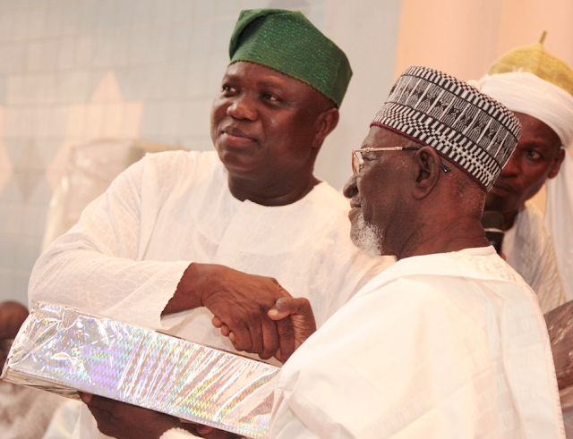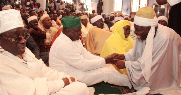 June 19, 2015 – Pictures: Governor Ambode, Oba Rilwan Akiolu At Lagos Central Mosque For Jumat Thanksgiving Prayer