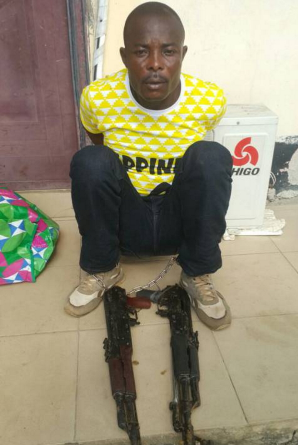 The suspect, 43-year-old Abiodun Amos popularly called Senti was caught on Wednesday the 2nd of November 2016 at his hideout near Majidun River in Ikorodu Lagos while making strategic plans on how to blow up the third mainland bridge with other members of his group.