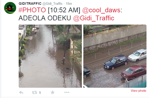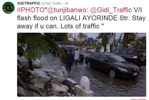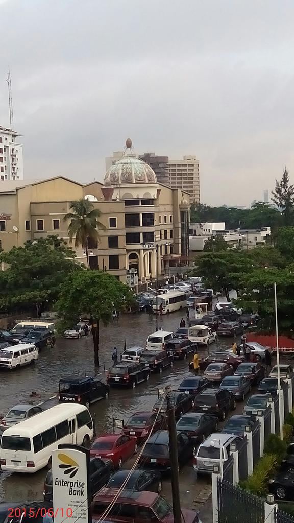 June 11, 2015 – Pictures: Lagosians Battle Flooding; Obalende, Mushin, Lekki, Victoria Island Streets Flooded After Heavy Rainfall