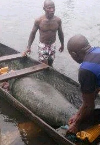 May 19, 2016 – Pictures: Fishermen Catch Manatee Sea Cow, ‘Monster’ At Obuama River Degema Rivers State Nigeria