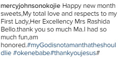 She was also privileged to share a cute pose with Kogi First Lady Mrs Rashida Bello.