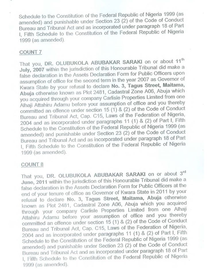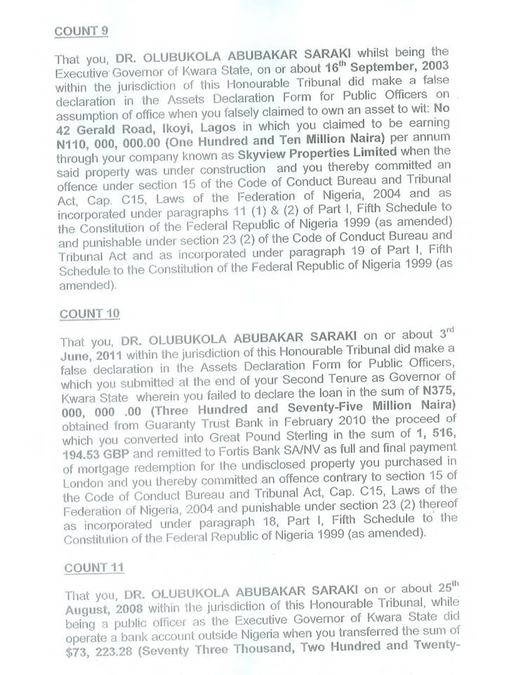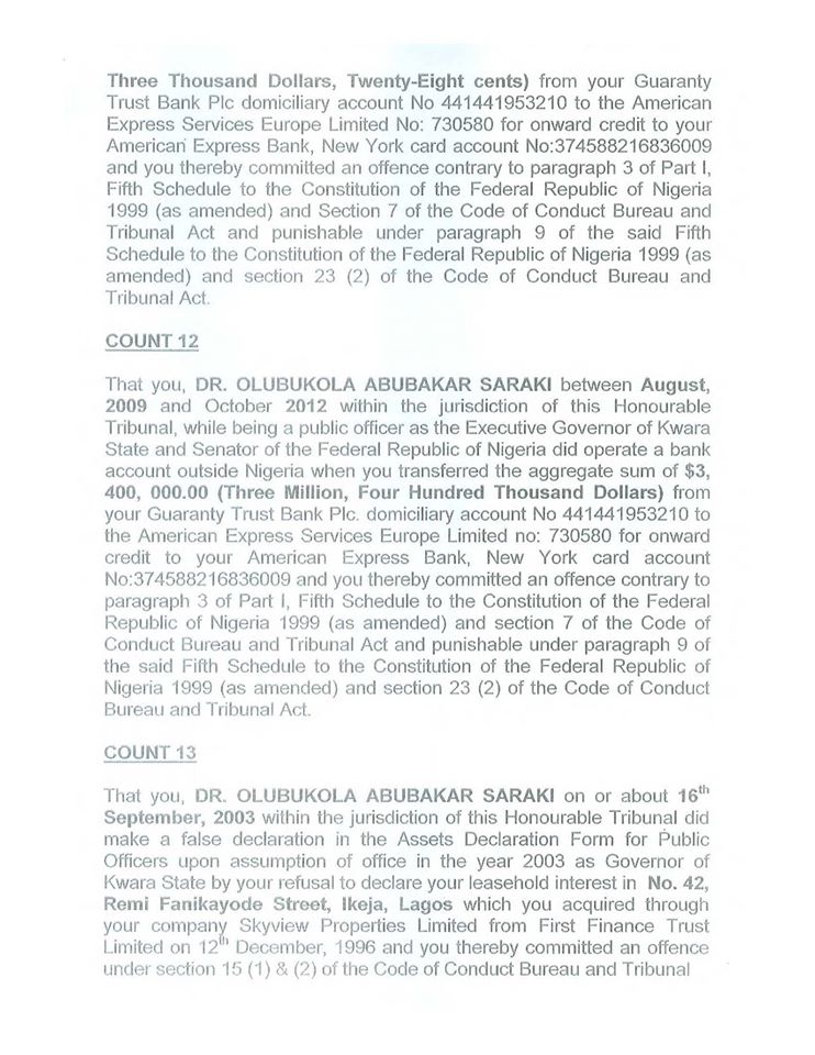 According to 13-count charge documents made available to Sahara Reporters, Saraki was charged for using Kwara State funds to fund his private asset purchase during his tenure as the governor.