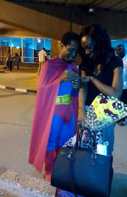 June 12, 2015 – Pictures: Nigerian Man Dressed As Superman Proposed To American Girlfriend At MMIA Airport Ikeja Lagos