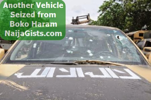 Another vehicle recovered from Boko Haram… See Boko Haram’s insignia infront of it.