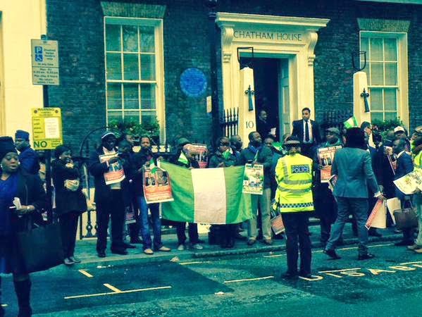 Some Nigerians stormed Chattam House this morning to exercise their democratic right Over Buhari’s presence in the UK and his political ambition.