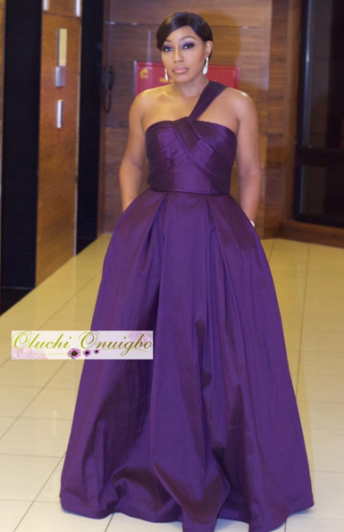 The star actress rocked a long gown picked by celebrity stylist Yummie Ogbebor.