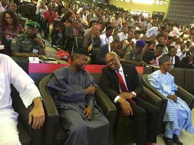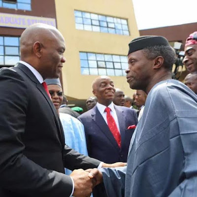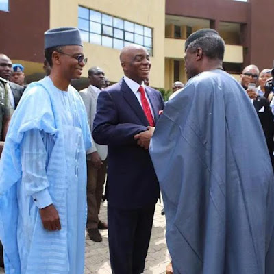 Vice President Yemi Osinbajo and Kaduna state Governor El Rufai met with Bishop Olaniyi Oyedepo yesterday during an event organized by billionaire businessman Tony Elumelu.