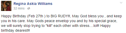 Nigerian beauty Queen and ex-Nollywood actress Regina Askia’s American-born hubby, Ruddy Williams aka Big Rudy celebrated his birthday on Friday the 27th of February 2015.